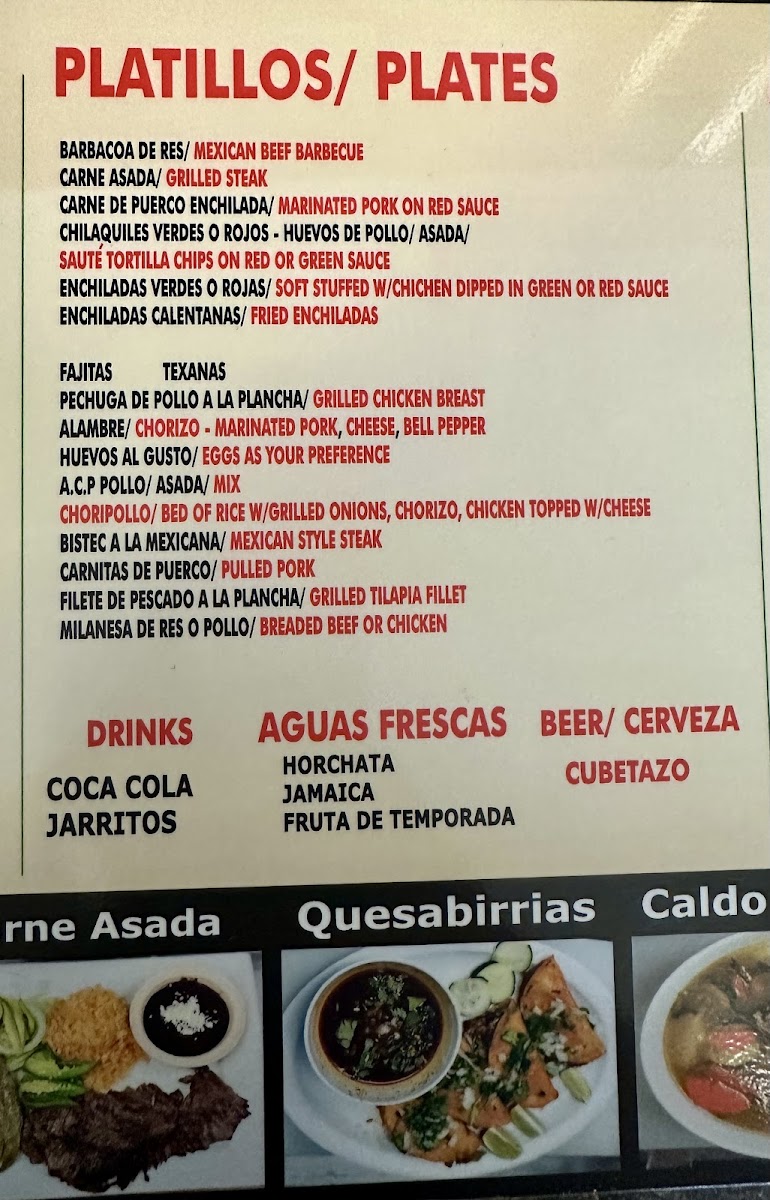 Don't miss the Platillos options, including tender Carne Asada and flavorful Chilaquiles, which showcase the depth of taste that loyal patrons rave about. For those with a sweet tooth, the menu offers delightful Postres like Flan and Choco Flan, perfect for rounding off your meal on a sweet note.